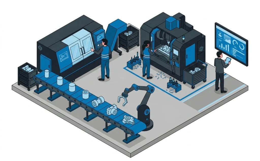Flexibilidade para manutenção, protótipos, ajustes e peças de baixa tiragem.